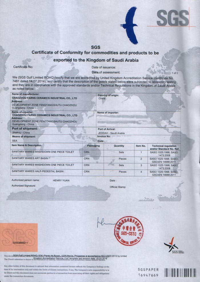 CHAOZHOU FARNS CERAMICS INDUSTRIAL CO., LTD